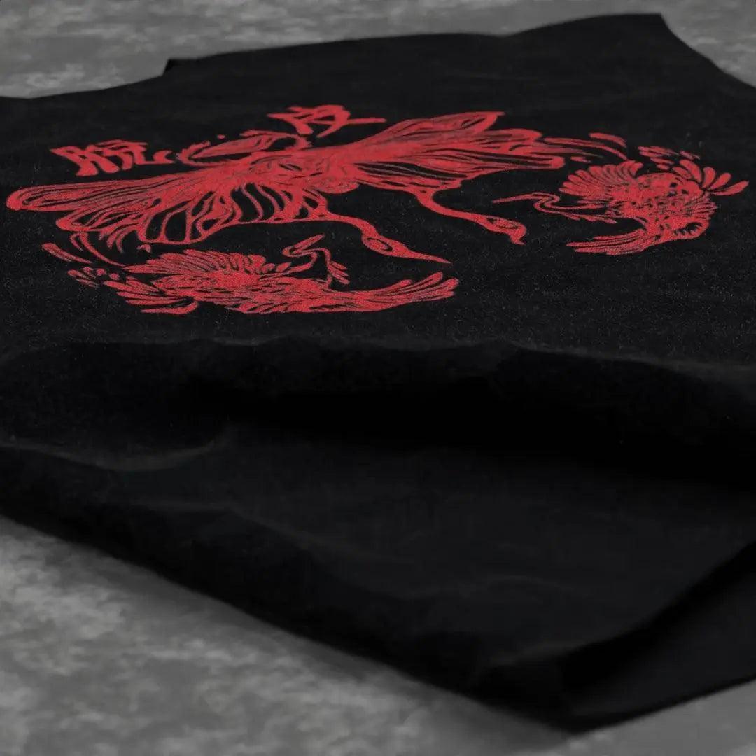 Mystical Detailing – Elegantly rendered winged figure entwined with cryptic symbols for an avant-garde vibe.